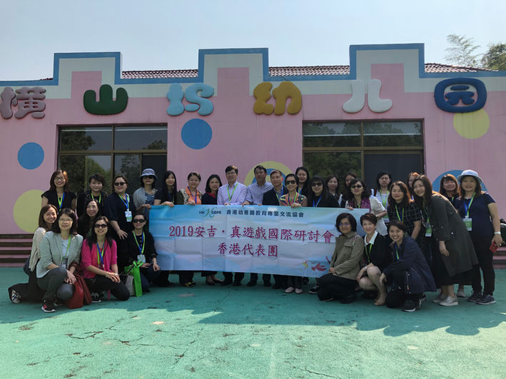 安吉‧真遊戲國際研討會於2019年5月12至15日舉行,本會受主辦方邀請組織約40人香港代表團赴安吉參與。香港代表團中包括香港教育局課程發展主任、師資培訓機構學者、幼稚園校長、主任、老師及家長。